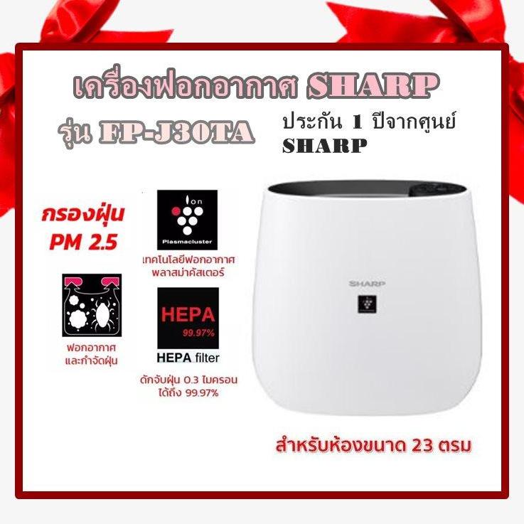 ขายลดราคา เครื่องฟอกอากาศ SHARP รุ่น FP-J30TA ป้องกัน pm 2.5 ได้ 3 ขั้นตอนในการกรองฝุ่นและเทคโนโลยีพลาสม่าคลัสเตอร์ เซ็นเซอร์ตรวจจับกลิ่นและฝุ่นละออง ห้อง ขนาด 23 ตร.ม. ประกันจากศูนย์ 1 ปี ส่งถึงบ้าน เก็บเงินปลายทาง รอรับได้เลย